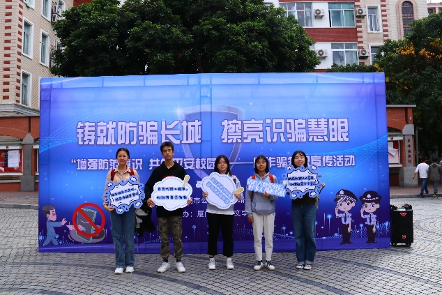 为进一步帮助广大学子有效辨别和应对诈骗行为,切实增强防范意识,11月10日中午,“增强防范意识 共筑平安校园”防诈骗知识宣传活动在三家村广场顺利举办。厦门市公安局大学路派出所教导员曾清勇、四级高级警长薛玉明、一级警长杨福全,外文学院党委副书记杨云良、沈丽秀及各年级辅导员莅临活动现场。外文学院全体学生参与了本次活动,共同学习防诈骗知识,提高自我保护能力。
