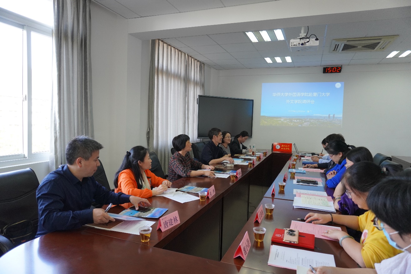 华侨大学外国语学院党委书记李璐岚及主持工作副院长陈文革介绍了华侨大学外国语学院的基本情况、发展历程、办学特色和未来发展方向等,希望通过此次调研双方进一步加深交流沟通。华侨大学外国语学院领导班子十分重视此次调研活动,也将其视为一次宝贵的学习机会,通过向外文学院了解学习,为今后学院工作开展过程中遇到的困难提供有参考性的解决方案。