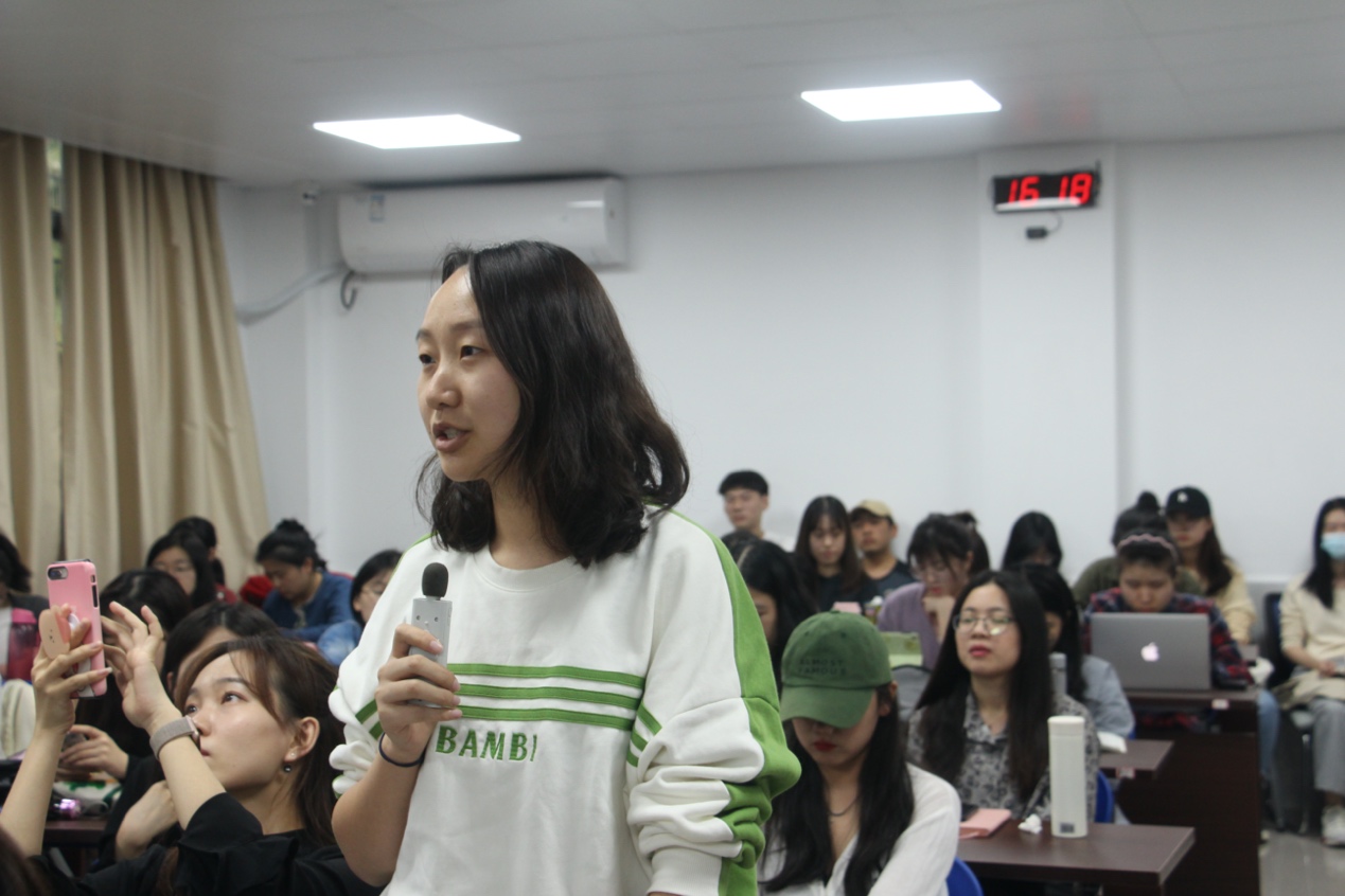 讲座结束后,外文学院英语语言文学系副主任林斌老师对吴警官精彩的讲解与分享表示诚挚感谢,并鼓励在场师生积极提问。在问答环节,肖晓燕教授补充到,现今口译领域中逐渐出现技术翻译转向的趋势,吴警官的分享为同学们提供了灵感与帮助。同学们也与吴警官积极互动。李璐扬同学分享了此前再看守所陪同口译的经历,黄佳惠同学向吴警官咨询了警队对译员的具体期待。吴警官均耐心回应作答,表示译员最重要的就是保持中立、准确传达。最后,研究生教学秘书王玉菡老师号召在座同学踊跃报名厦门市出入境管理支队翻译志愿者项目,同时嘱咐同学们合理安排时间,积极协调好实践与课业。