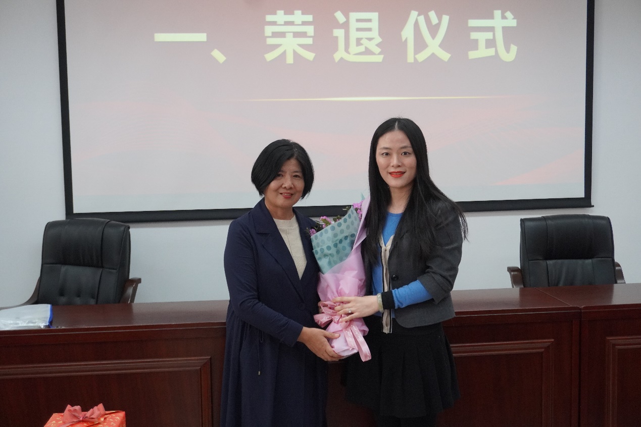 会上,为进一步加强对退休教师的关心、关怀,增强荣誉感和归属感,激励新一代青年教师接续奋斗建功立业新时代,学院为鲁京明、席克琳两位老师举办了教师荣退仪式。外文学院院长陈菁、副院长李美华,青年教师代表黄荍笛、刘浩然分别为两位荣退老师送上鲜花和祝福。