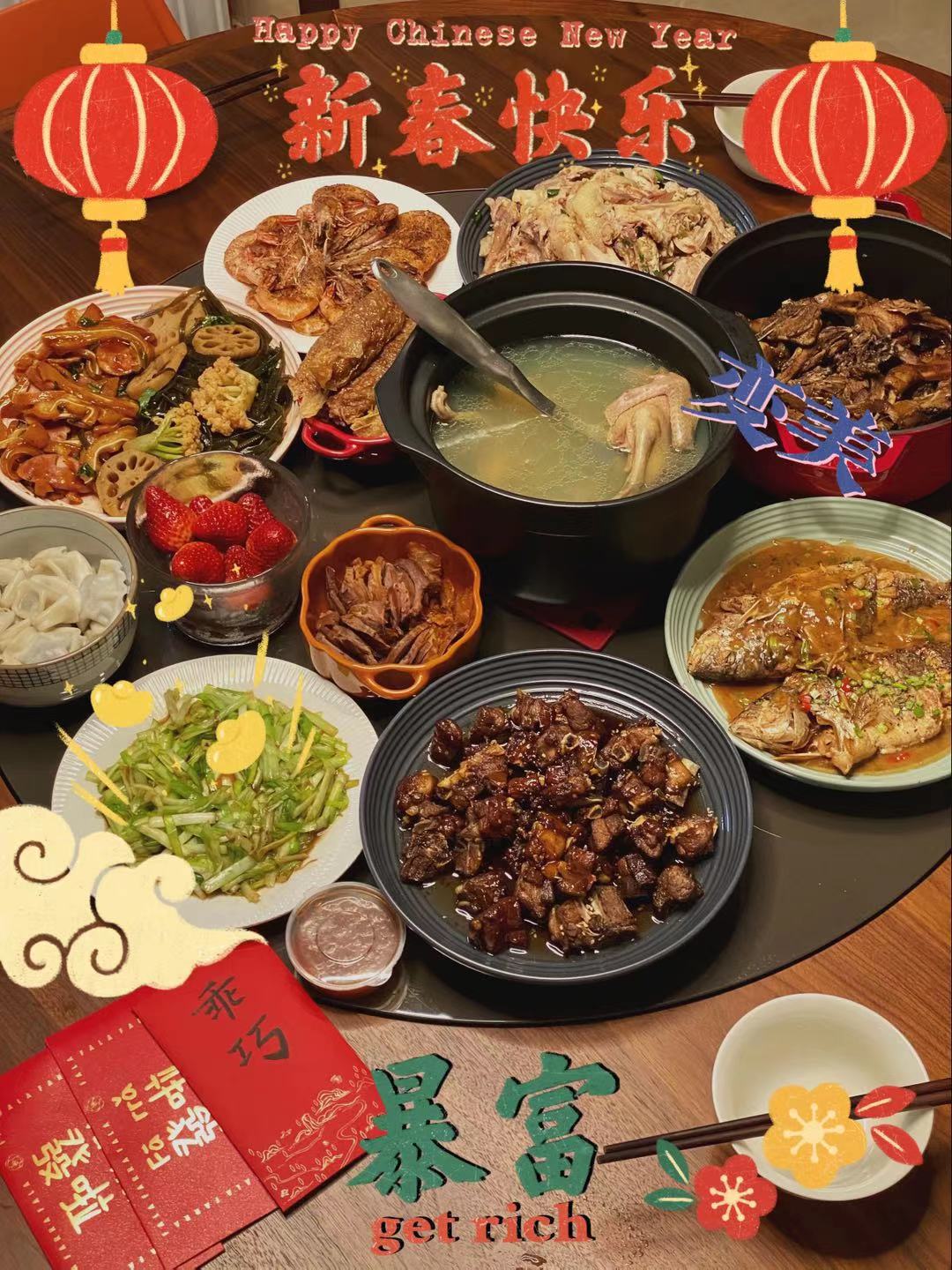 我们知道,年夜饭对华夏儿女来说,不仅是一顿精心烹制的佳肴,即使平日远隔千里,疏于联络,新春佳节也要阖家团圆,围桌共话。年夜饭代表着国人对来年风调雨顺、家宅平安的朴实祈愿,承载着血脉中斩不断的牵挂与羁绊。吃的是团圆饭,品的是归家情。此次“舌尖上的外文·云上年夜饭”活动的圆满成功表达出大家对于美好生活的共同愿景,全体教职员工将以更加昂扬的精神面貌迎接2021年新篇章、新征程 !