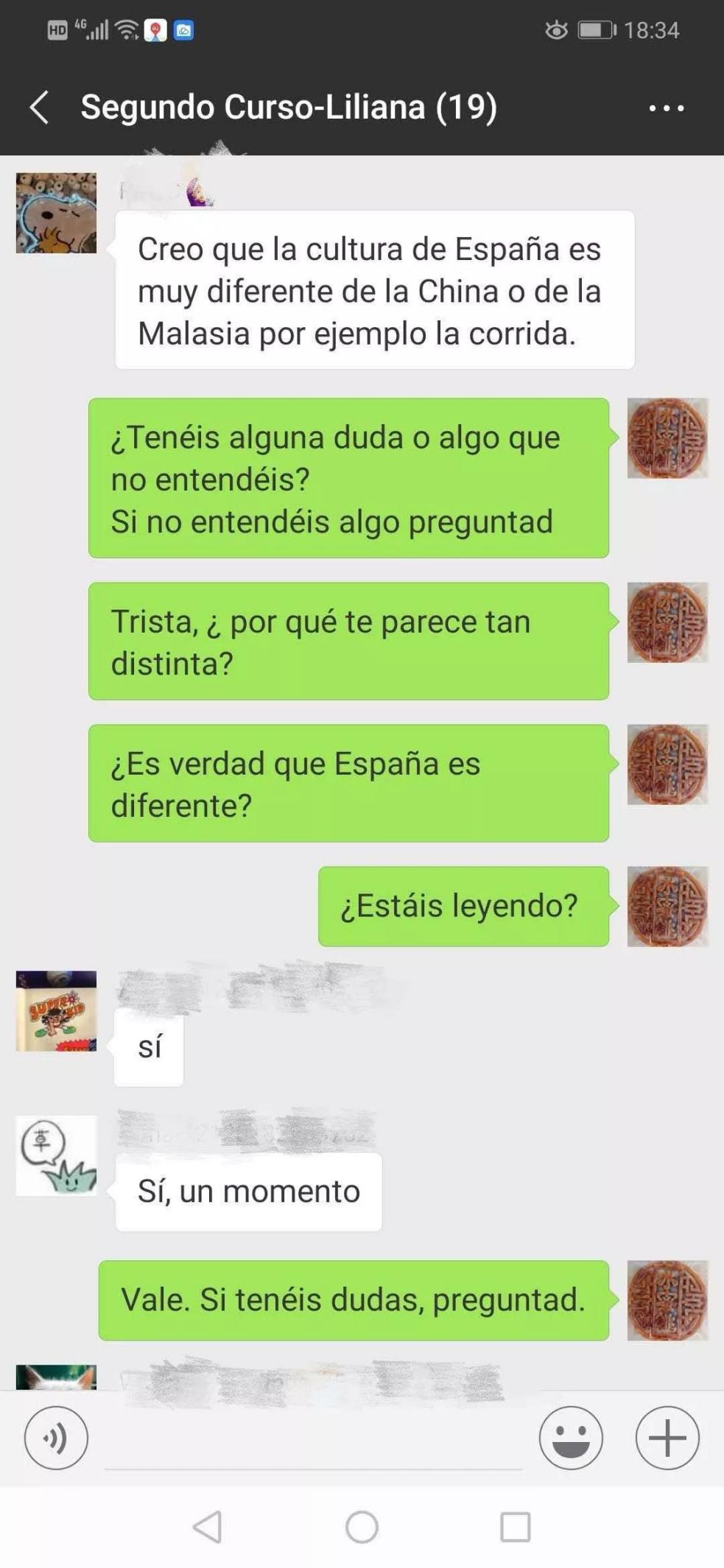 西语外教Liliana为了稳妥地上课,我所有的课堂都在微信进行。课前我会把课程包含的参考书目、解释和问题等材料发给学生。为此,我还独立设计了一个互动式的问答游戏,学生们玩游戏时,会告知他们的答案是对还是错。如果答案正确会用掌声祝贺,并展示正确的文本;如果答案是错的,会音效提示答案错误,并回到要回答的问题上。