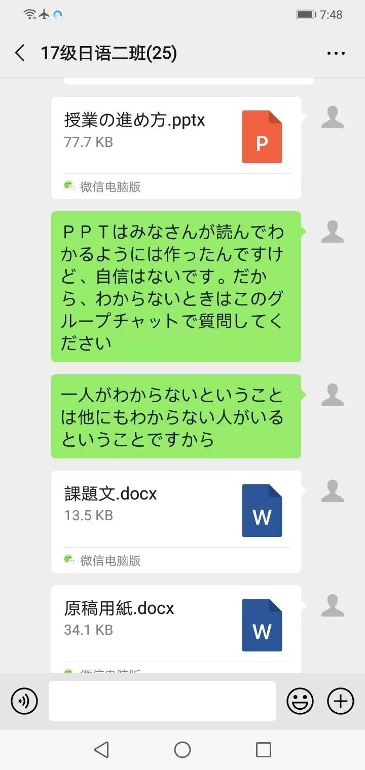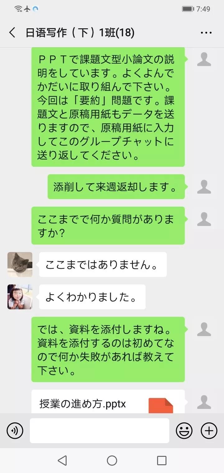 山本千瑞老师:学生们即使在线上学习也一点都不懈怠。我非常感谢群里的团队长,他们不停地帮助我核对每一门课。学院的同事给了我许多关于课堂的建议,帮助我搭建微信群。无论如何,我会尽量想办法克服因网络问题产生的困难。