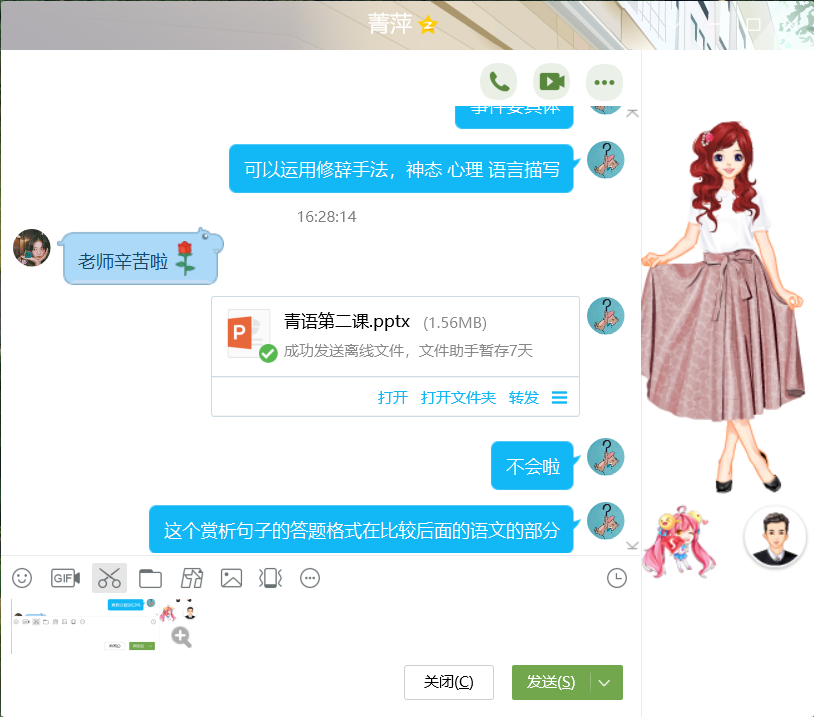 青语课堂旨在为居住在厦门城中村中的孩子们提供力所能及的帮助,通过“一对一”辅导,让他们感受到我们的关怀与爱心。经过这一段时间的课程教学,我与屏幕另一端素未谋面的孩子从陌生、胆怯到相熟、相知。从她逐渐活跃的表现中可以感受到她对我的信任,家长的每一句感谢也给予了我莫大的动力,备课与教学付出的时间都转化为了满满的收获与满足感,心中的责任感更是愈发强烈。我深刻体会到了志愿服务的意义,“付出是一种享受施予的快乐。”作为大学生,我们不仅要学习专业知识,更应积极参加志愿服务活动,奉献社会,这不仅能提升自我,充实自我,亦能带来难忘的回忆与收获。