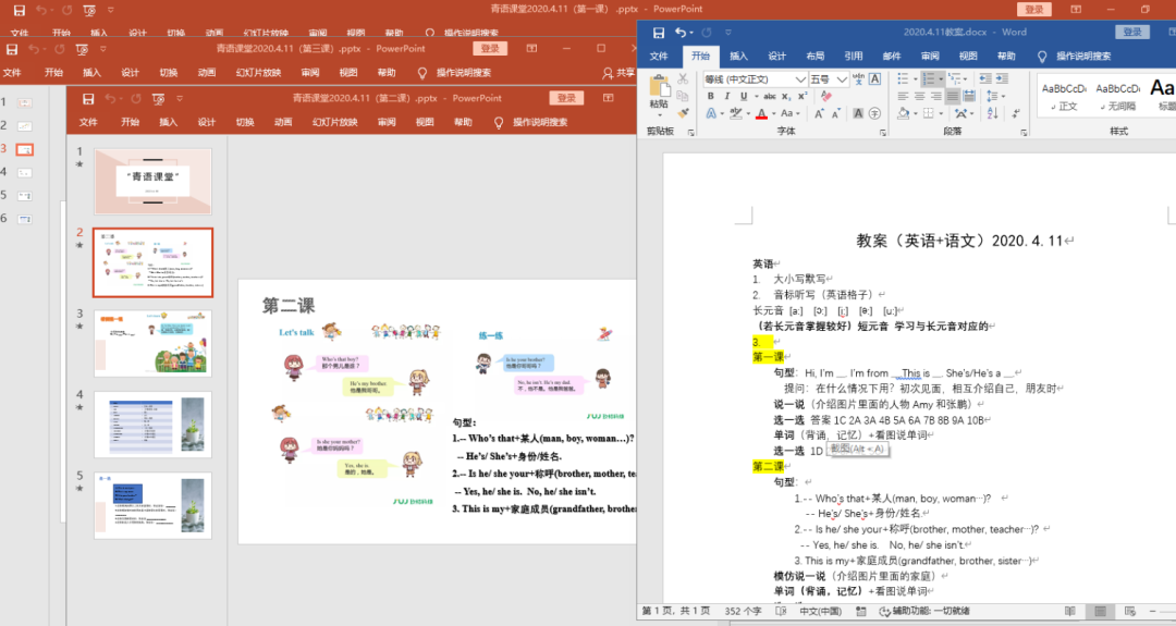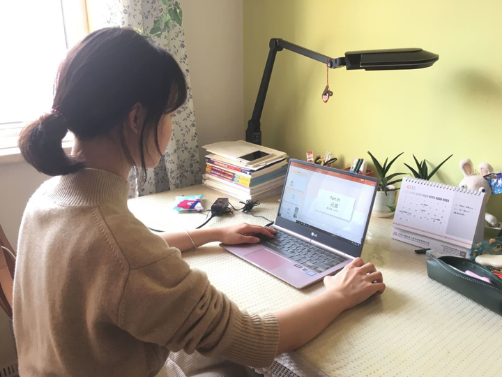 志愿者针对“1对1”线上教学认真备课