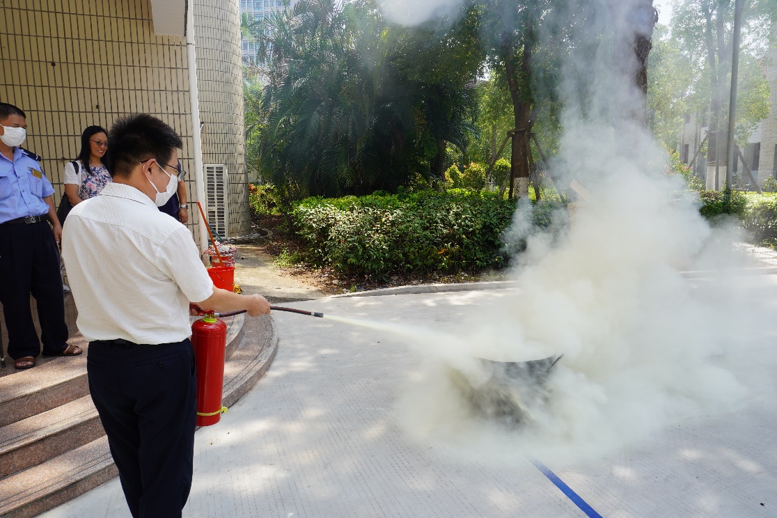此次检查内容涉及安全管理制度的落实情况、消防安全设施的配备情况以及教学实验设备的管理情况等。孙俊逸副科长对火灾发生时的应急处理办法、灭火器的使用、灭火时的注意事项做了专门讲解。为增强全院师生和消防安全管理人员的防范意识,提高突发情况应急处理能力,学院还组织开展了消防演练活动。