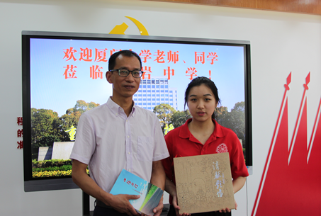 参观结束后,实践队员向章楚祥老师转交了陈老师赠送给母校的回忆录及两张珍贵的老照片,还带去了陈老师对于母校的美好祝愿。章老师也向实践队赠送了黄岩中学纪念册。