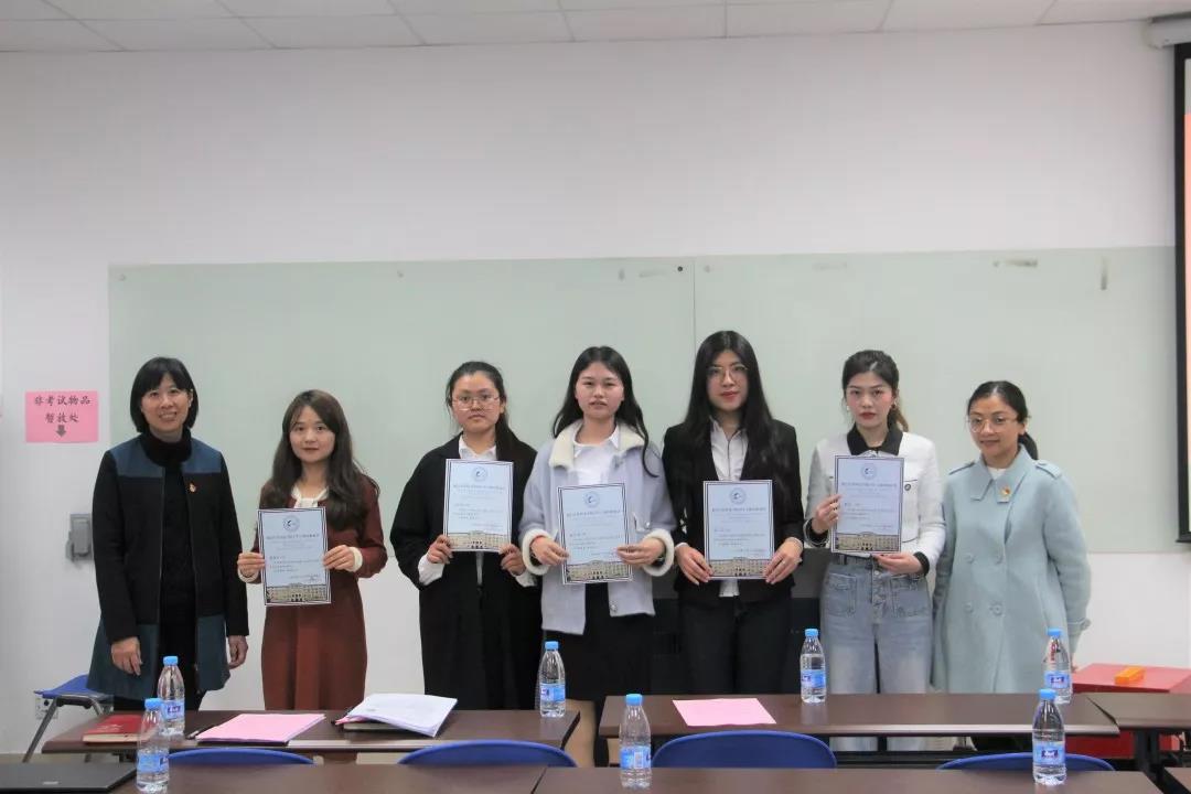 最后,沈丽秀老师、肖盈老师为外文学院2018-2019学年研究生会代表颁发任职证书,感谢他们在过去一年里为学院学生工作做出的贡献,也以此勉励新一届研究生会继续努力,承前启后,继往开来。