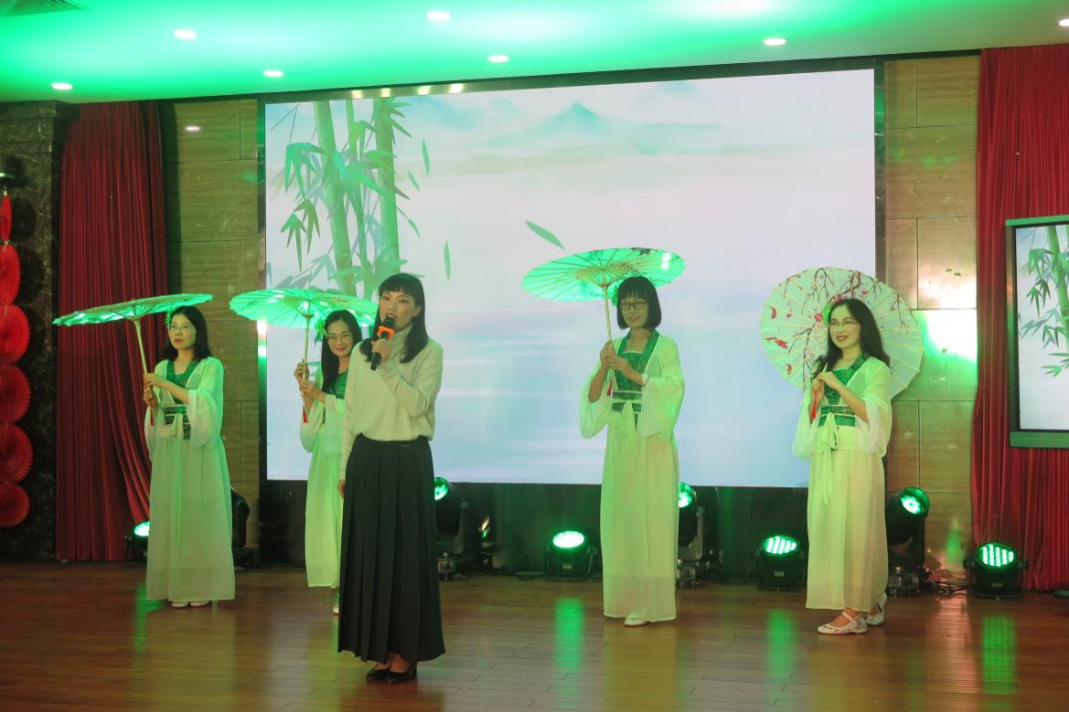 在一片热烈的掌声中,晚会以一曲全员大合唱的《我和我的祖国》落下帷幕。此次晚会紧紧围绕着外文学院的多语种文化特色主题,让参与的每一个人都感受到了国际多元文化的瑰丽多彩,并为学院教职员工提供了展示才艺、轻松愉快的舞台,受到了老中青三代教职员工的热烈欢迎。这精彩纷呈、欢歌笑语的新春联欢会暨团拜会体现了外文学院积极向上、团结进取的精神风貌,表达了全体教职员工对学院未来发展的美好祝愿,传播出外文人团结一心、投身“双一流”建设的正能量,也开启了2020年的新篇章、新征程。