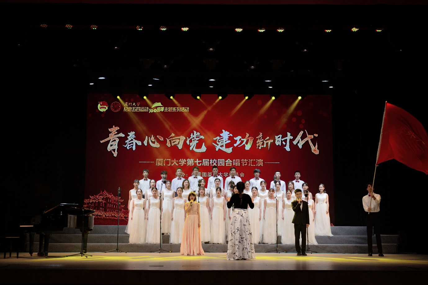 5月8日至5月19日,为庆祝中华人民共和国成立70周年、纪念五四运动100周年,引领广大青年弘扬以爱国主义为核心的伟大民族精神,坚定“四个自信”,营造和谐、向上的校园文化氛围,“青春心向党·建功新时代”厦门大学第七届校园合唱节在厦门大学思明校区举行。来自26个学院合唱团的近千名学生参与了此次合唱节,外文学院合唱团以悠扬的歌声和极富感染力的演绎,充分展现了外文学子昂扬的精神风貌,在歌声中弘扬五四精神,唱响青春中国梦。