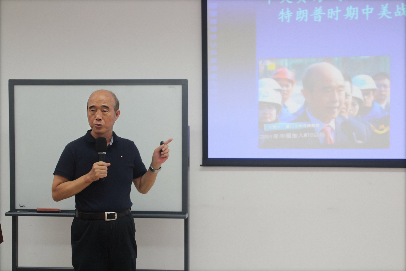 表彰大会在《国际歌》中圆满落下帷幕。表彰大会前,学院党委“红色外文大讲坛”邀请到原厦门大学南洋研究院/国际关系学院院长、特聘教授、学校理论报告员庄国土为全体党员带来题为《中美贸易战:特朗普时期中美战略新博弈》的讲座。庄国土教授介绍了中美贸易战的脉络及最新战况,阐释了经济全球化形势下中国的崛起与发展,帮助在座的外语专业师生党员进一步理解了党的十九大以来我国的外交政策和当前我们所面临的世界“百年未有之大变局”,激励广大师生党员自觉以维护国家主权、安全、发展利益,讲好中国故事、传播中国声音为己任,为实现中华民族伟大复兴的中国梦、为推动构建人类命运共同体的崇高事业不懈奋斗。