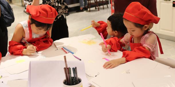 表演之后,小朋友们又变成小画家,一边画一边思索着下一步该怎样构图,为爸爸打造世上唯一的手工彩绘蛋糕盒。