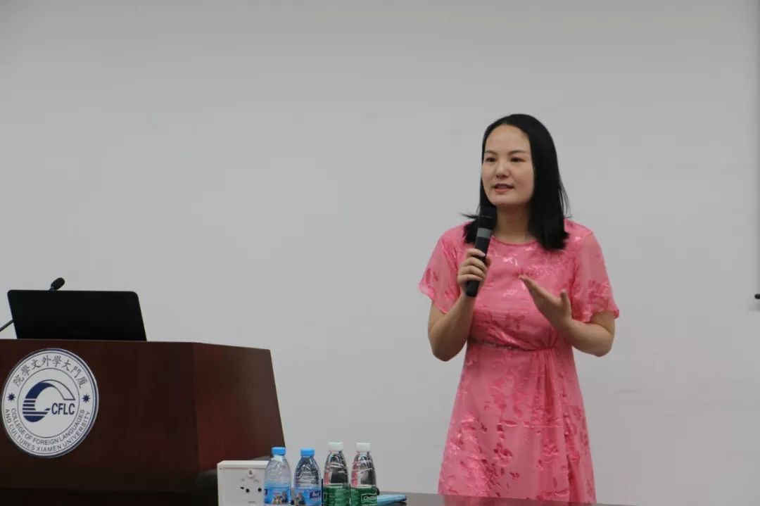 英语语言文学系的苏伟老师结合实际练习,为大家讲解了中级英语视听说课程。苏老师在演示中阐释了听力课不一样的特色,通过布置听说写结合的交际任务,让学生听完材料后自己出题,展开逻辑思考,从而达到思维训练的真正目的。