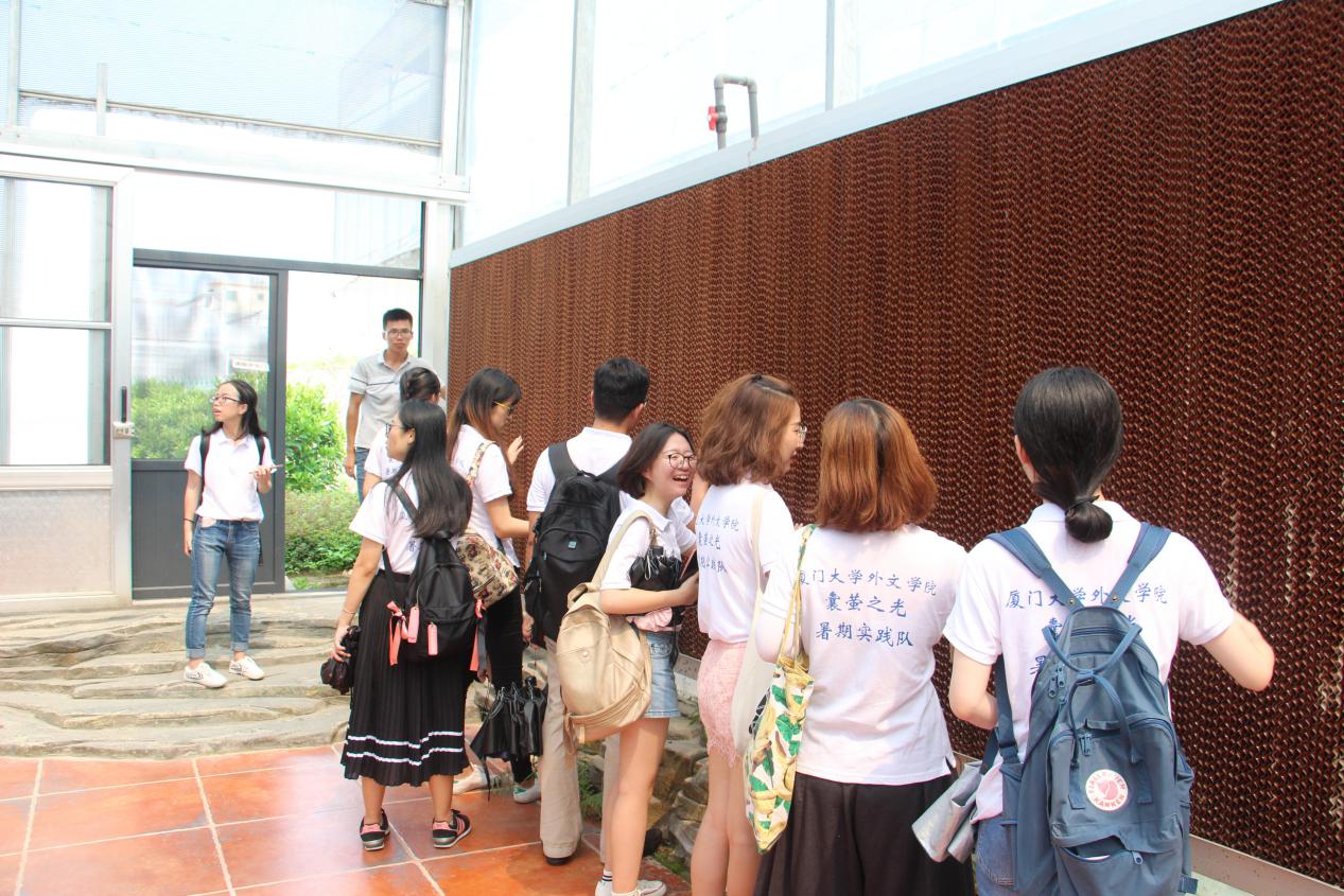 81日上午,厦门大学外文学院“囊萤之光”暑期社会实践队调研组的成员们如期踏上调研之旅。伴随着车内欢快的南洋音乐,队员们来到了目的地——厦门市鑫美园果蔬专业合作社。