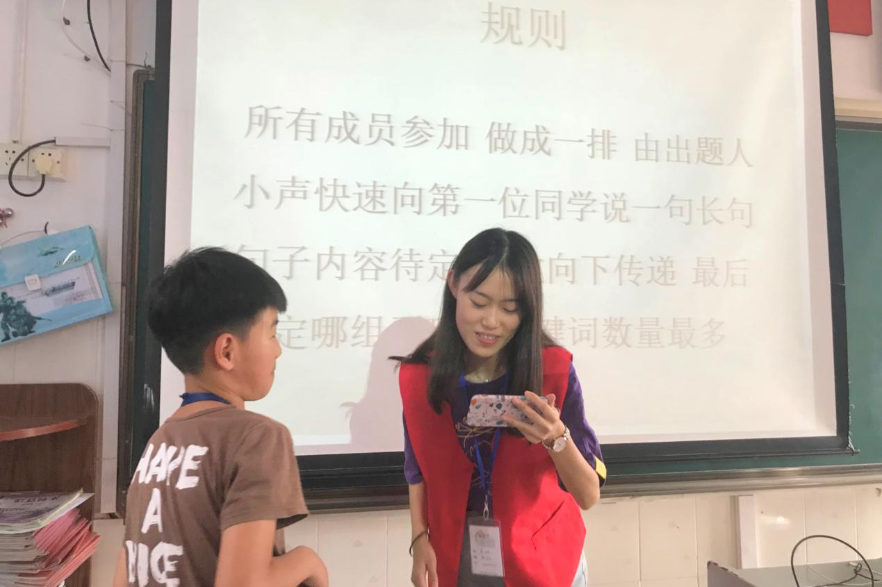 “Need for Stars”暑期社会实践队的队员们秉承着“寓教于乐”的教学理念,在实践活动的最后一天,将每个班的同学分为三组,进行了抢凳子、你画我猜等游戏,随后又组织同学们进行了知识抢答比赛。游戏与知识竞答并行的方式极大地调动了同学们的积极性,激发了他们踊跃答题的斗志,在不知不觉中帮助他们复习了这几天所学的知识。