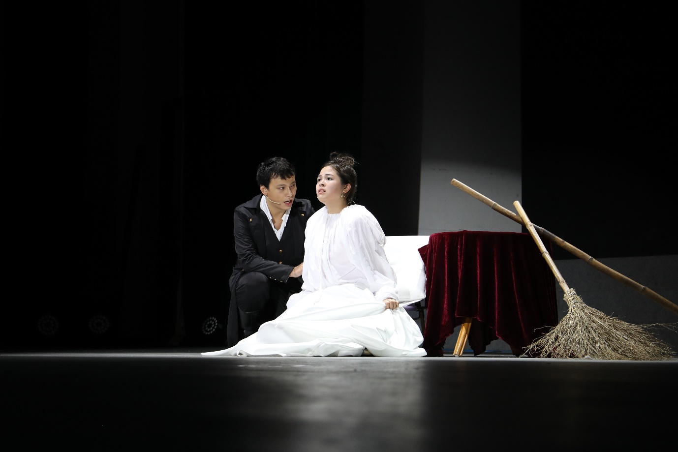 演出过程中,演员们以饱含深情的歌声将性格迥异的人物演绎得惟妙惟肖。值得一提的是,剧中小珂赛特和流浪儿加弗洛什两个角色由同一位女演员饰演,她对两个角色截然不同的性格把握得当、游刃有余,展现出精湛的演技以及对角色的深入理解。