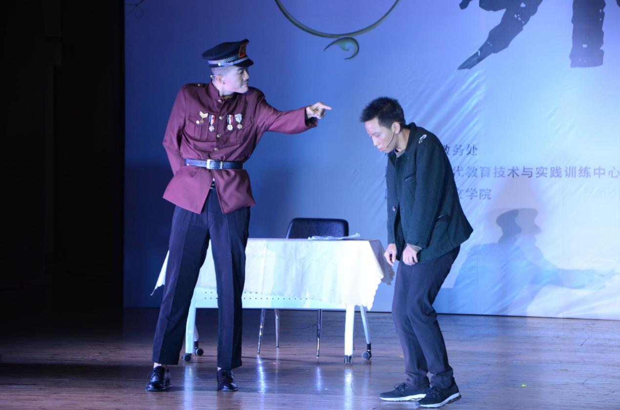 俄语剧目《外套》改编自果戈理所著的短篇小说。主人公巴什马奇金在回家路上遭遇抢劫,失去了他花了所有积蓄添置的外套。他向警察署长官寻求帮助,却反被色厉内荏的长官活活吓死。本剧结尾处十分精妙地采用了荒诞的手法,使主人翁的外套化为“厉鬼”展开复仇。演出中灯光明暗交替,配合着情节发展,渲染着悬疑气氛。演员们通过对角色的深入理解,细腻生动地演绎了主人公的神态与动作变化,重现了俄罗斯最为真实的底层人物形象,让观众仿佛置身于那个充斥着压迫的俄罗斯灰色年代之中。