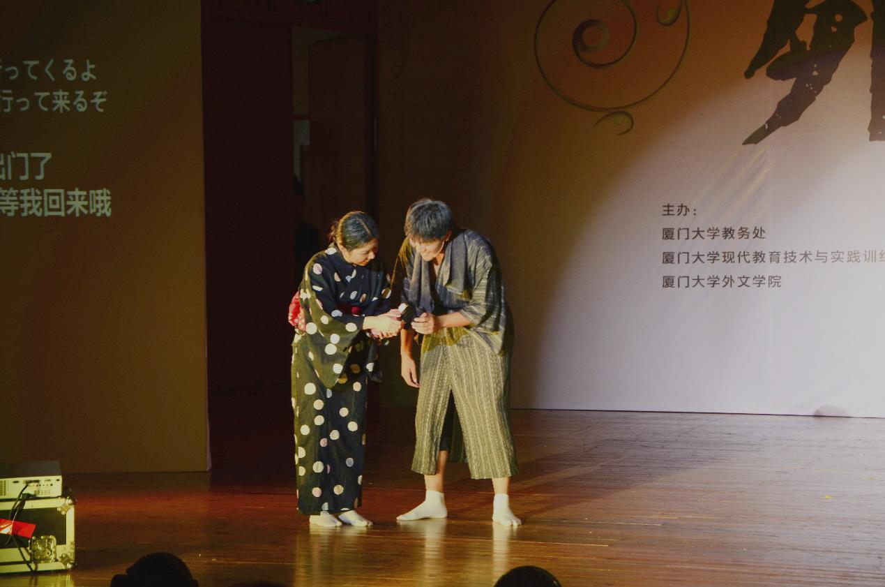 12月8日晚,厦门大学第三届“外文好戏”收官之作——由日语、俄语、德语联袂演绎的“三国演艺”于厦门大学科学艺术中心音乐厅上演。本场演出依次演绎了日语剧目《辉夜姬》、俄语剧目《外套》、德语剧目《老妇还乡》,为广大师生呈现了一场高品质的视听盛宴。南京大学法语系教授、外文学院讲座教授刘成富,外文学院党委书记陈志伟,副院长徐琪,欧洲语言文学系主任顾鸿飞、副主任方厚升等嘉宾领导和老师莅临现场观看演出。本场演出由2016级英语专业本科生刘信和2018级日语专业本科生王嘉仪主持。