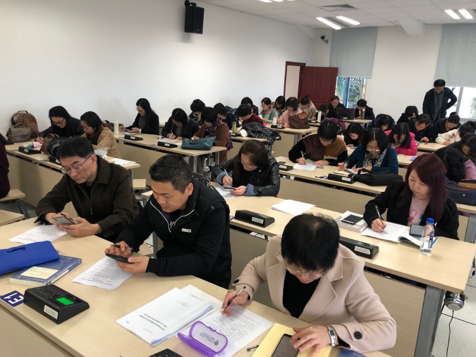戴鸿斌教授主持英语语言文学系本次政治理论学习,通过讲解、讨论、提问等形式,将习近平新时代中国特色社会主义思想和党的十九大精神应知应会知识深入浅出地与参会人员们分享,使得各位参会人员结合工作实践、对理论知识有了更为深刻的理解。日语语言文学系全体教师则通过互问互答的方式,加深了理解,取得了良好的学习效果。法语语言文学系一位教师在集体讨论学习心得环节中提出,从“中国梦”的诠释中体会到“中国梦”与中国人民、中华民族的未来命运息息相关,同时认识到作为党员应当尽己所能投身本职工作。外语教学部则通过现场开卷测试的方式,增强学习效果,提高学习效率。