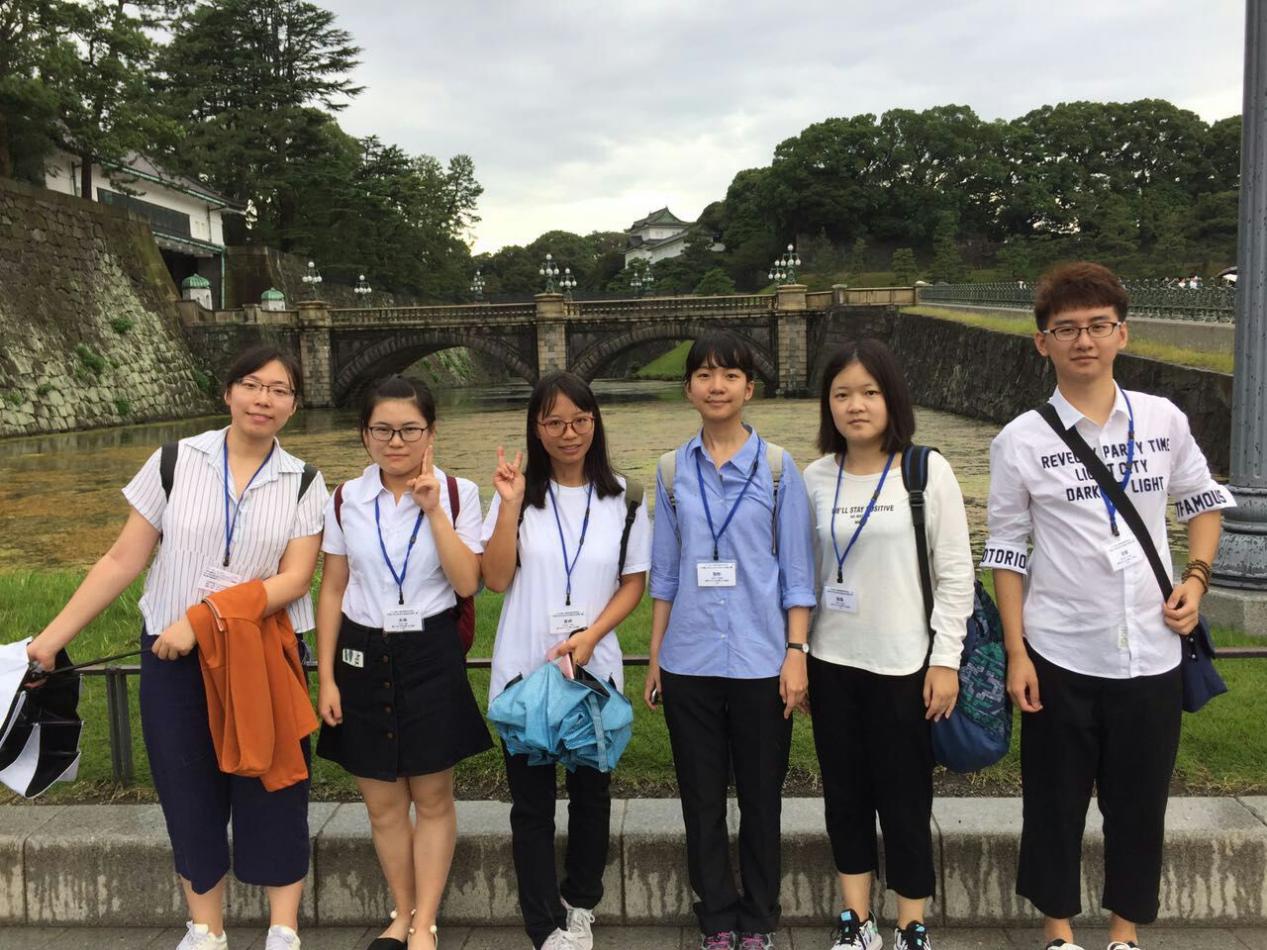 (图1. 日语系6名同学于日本皇居合影)