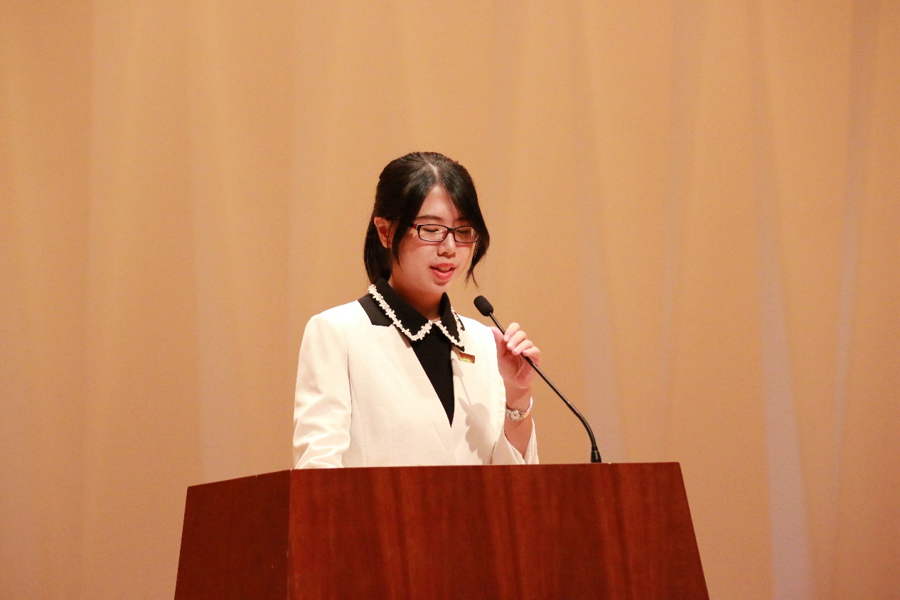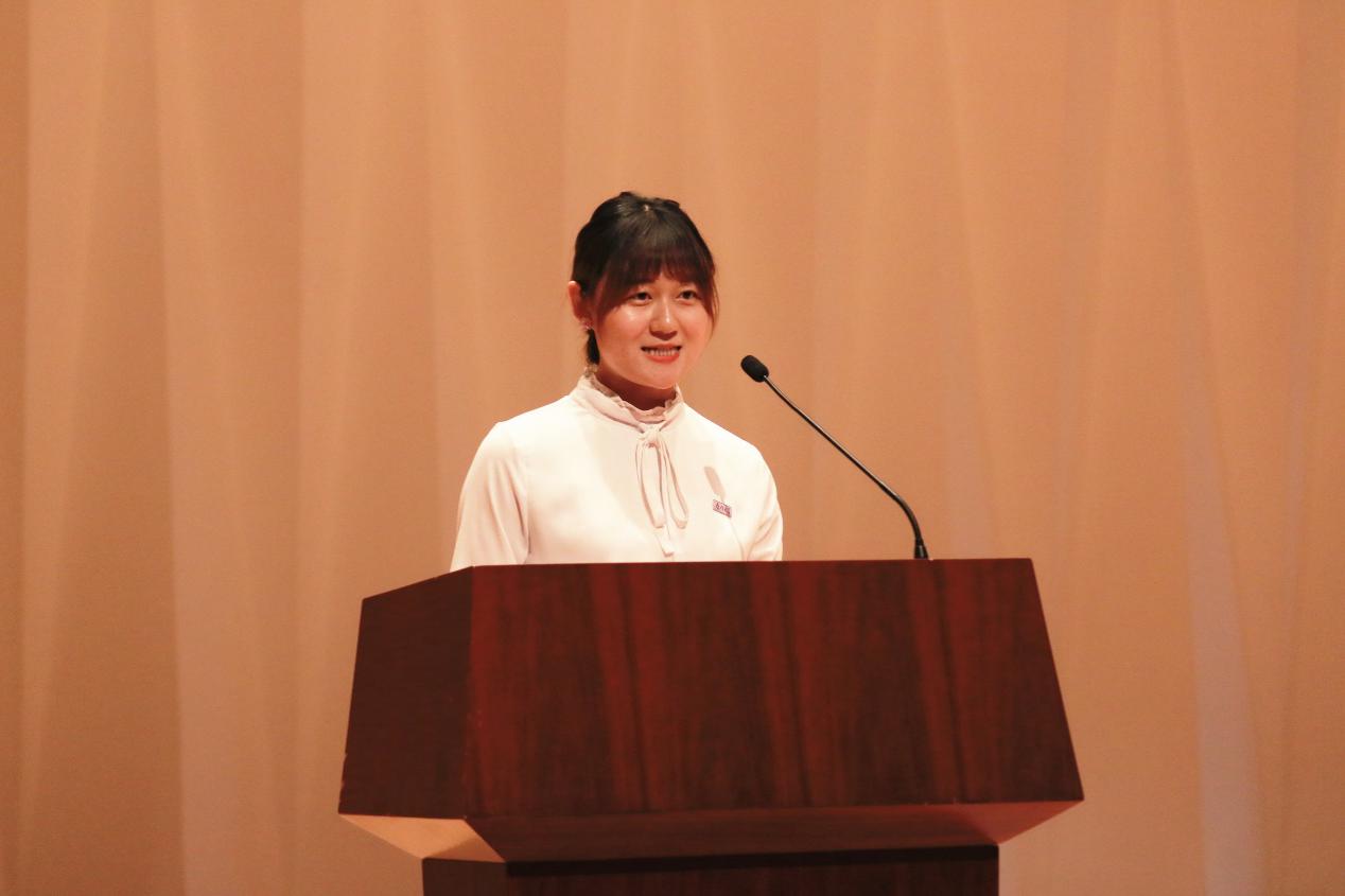 老生代表、2014级日语专业本科生郝菲与新生代表、2017级英语语言文学专业硕士生肖宁双依次上台发言。郝菲同学以厦门大学“囊萤”“映雪”等或引古籍、或敬先贤的独特建筑名字为线索,分享了自己对大学生活的感悟,希望新生们能够勇攀高峰、胸怀高远、励志修身、沉淀自我,创造自己与外文的新辉煌。新生代表肖宁双回顾了外文学院九十多年来的历史变迁,并表达了她对自己和所有新生寄予的“有仰望天空的梦想,也有脚踏实地的坚定”“有心如止水的沉稳,也有探索求知的激情”“有静水流深的心态,也有沧笙踏歌的热情”这三个期望与祝福。