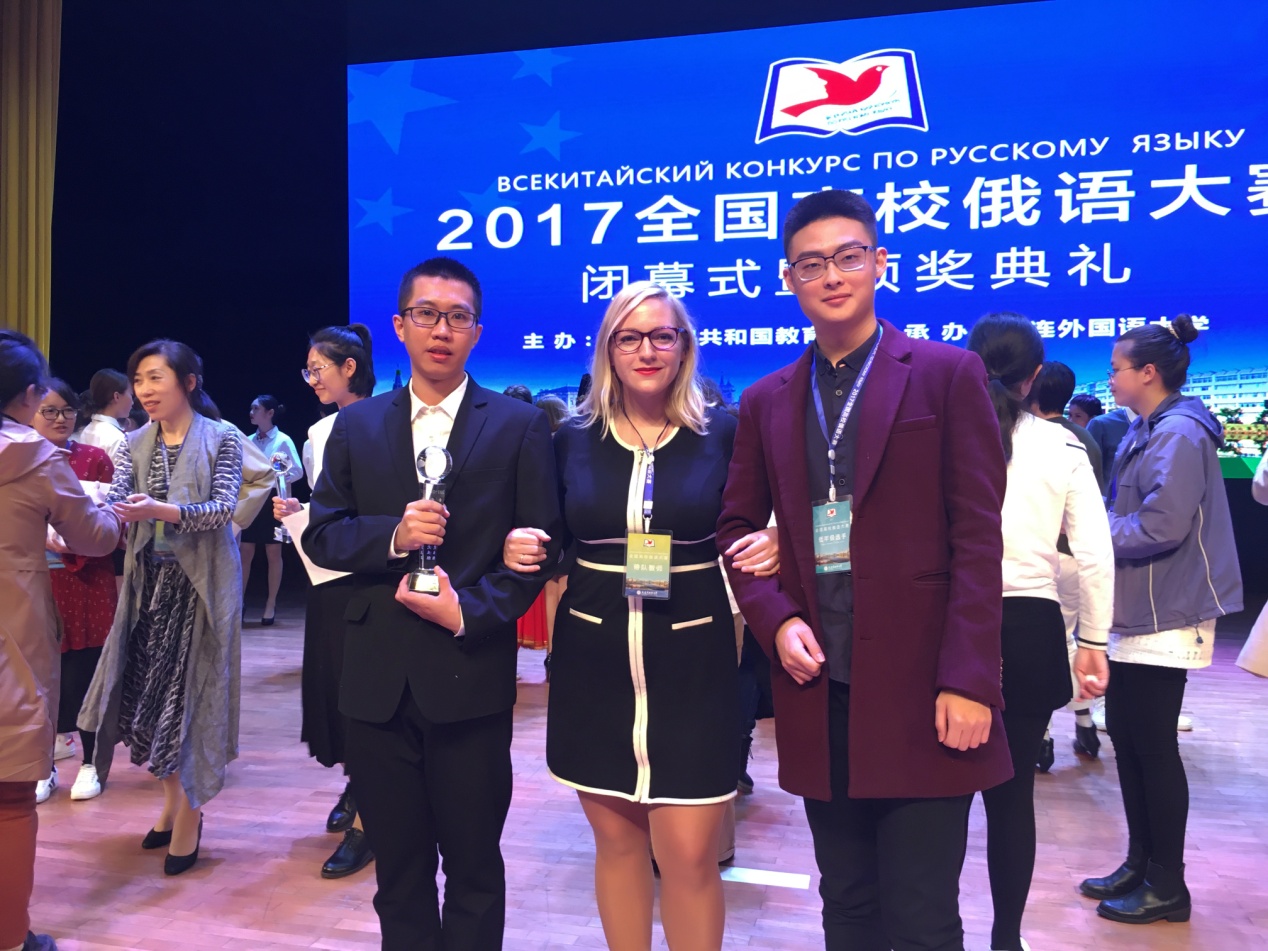 2017年10月15日至16日,由教育部国际合作与交流司主办、大连外国语大学承办的“2017年全国高校俄语大赛”在大连外国语大学举行,来自全国138所高校的352名选手参加了本次比赛。大赛分设低年级组、高年级组和研究生组,经过两天的激烈角逐,由外籍教师Ирина Нестеренко带领的厦门大学代表队凭借出色发挥,喜获佳绩。2016级本科生马权政荣获低年级组二等奖,总成绩位列低年级组第六名;2017级研究生余炯辉荣获研究生组三等奖,总成绩位列研究生组第十名。