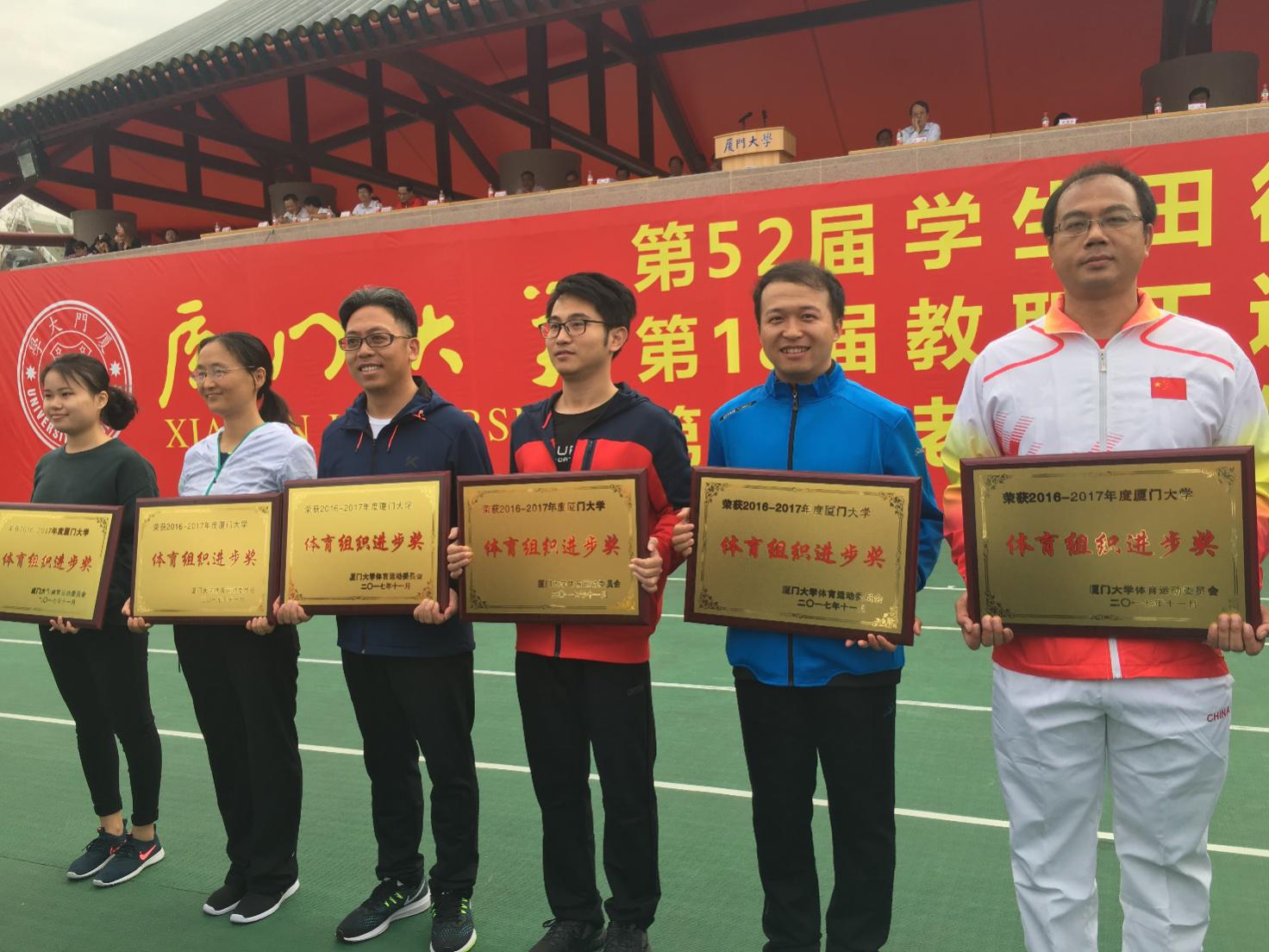 11月3日上午,在初秋和煦的微风中,厦门大学第52届学生田径运动会、第18届教职工运动会、第26届老年人体育健身大会在厦门大学演武场开幕。外文学院党委书记陈志伟,院长张龙海,党委副书记郑新风,副院长李美华、辛志英出席开幕式,全院近70名教职工代表与近70名学生代表参加本次运动会开幕式的入场式表演。