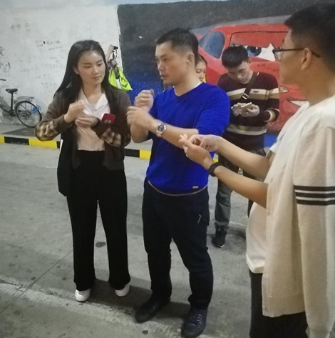 热情的聋人中有一位穿橘色衣服的奶奶给很多同学都留下了深刻的印象。奶奶和同学们交流时一直强调要使用自然手语,打手语时表情尤其重要。她还不时在本子上写字,不厌其烦地教同学们手语新词,让大家十分感动。参加活动的聋人中有一位从北方来的学设计的姐姐,她随着丈夫来到厦门,现在是一名淘宝客服。此外,一位热情阳光的幼儿园教师也和她的聋人朋友一同来到厦大,她有很强的口语表达能力,需要时会主动帮助同学们理解手语并准确表达。