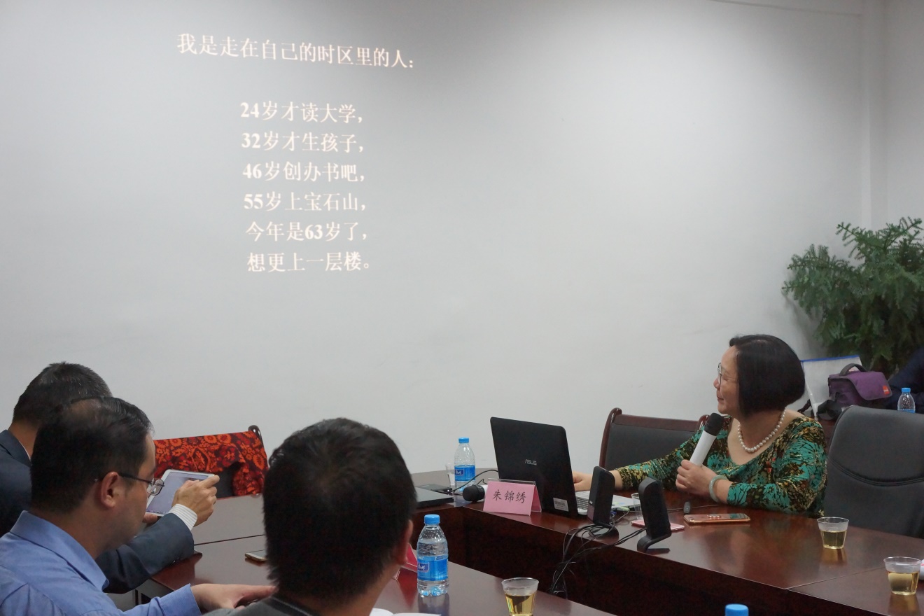 首先,朱锦绣院友通过一个简短的视频向同学们介绍了她的心血结晶——“纯真年代”书吧。“纯真年代”书吧多年来通过举办多样的人文活动,为市民提供阅读和交流的空间。此外,它还是杭州第一家集书文化和吧文化于一体的时尚文化休闲场所,被誉为“杭城民间文化地标”。