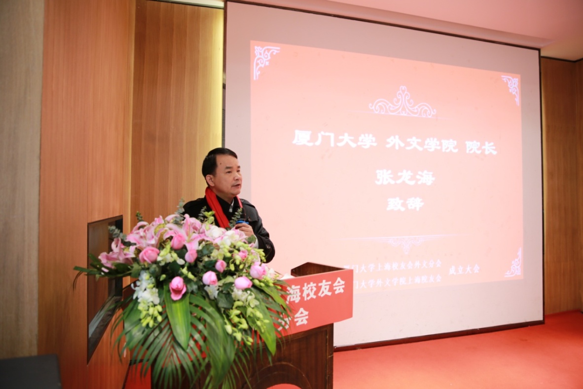 厦门大学外文学院院长张龙海在致辞中表示,外文学子在上海汇聚一堂心系母院,纵使千山万水也挡不住师生情深,院友会的成立将更好地与母院连结。