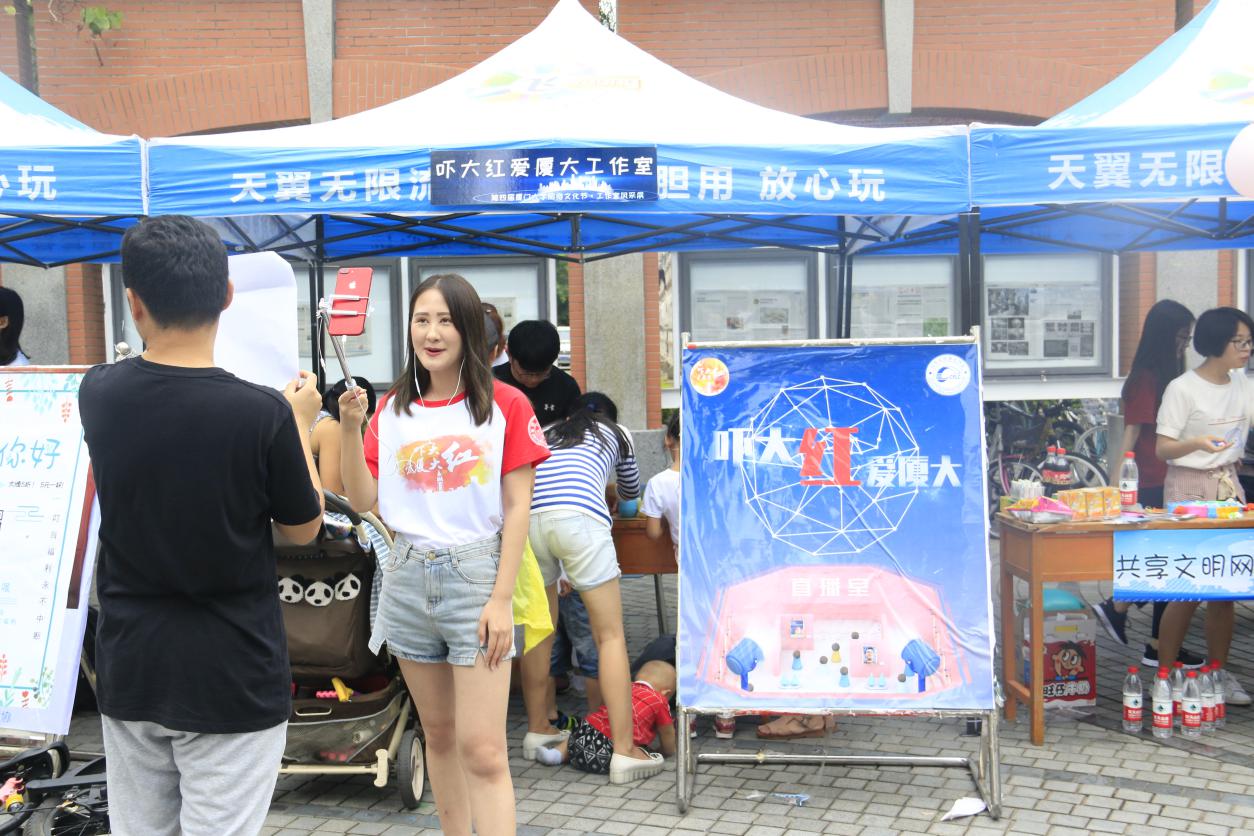 同日,“传播正能量,弘扬主旋律”厦门大学第四届校园网络文化节在三家村学生广场举行,包括“吓大红爱厦大”在内的15个网络文化工作室参与。各个工作室结合各自的项目特色,通过一系列现场活动,为即将在厦门大学举行的第四届中国“互联网+”大学生创新创业大赛做了充分预热。