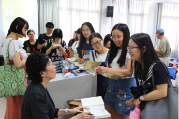 最后,在同学们的追问下,李小婵女士讲述了自己求学、工作、爱情各方面的诸多往事,并回答了学生们的提问。最为值得一提的是,李小婵女士告诉大家,只有我们问一声自己,可以说服自己,那么我们的人生不管在什么时候起步,都不会后悔。现场欢声笑语不断,同学们亦情绪高涨,李小婵女士为提问的同学赠书题名,大家留下了一段宝贵的记忆。