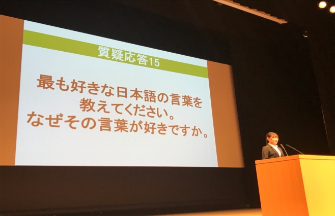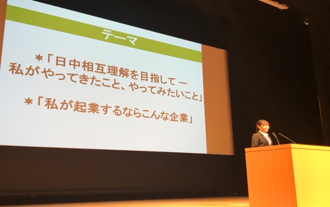 选手们以 “增进中日相互理解—我之所想,我之所为”或“我要创办的企业”为题目,进行了约5分钟的命题演讲,华体网郝菲同学以“我要创办的企业”为题,以“倾听”为切入点,通过为当今社会背负压力的人们派遣倾听者和交谈对象,表达了实现和谐社会的美好愿望。命题演讲结束后是约三分钟的即席演讲,郝菲同学以“你最喜欢的一句日语及理由”为题,围绕日本人的为他人着想的美好品质,谈了作为日语系学生应该去了解和体会日本社会文化的重要性,表达了自己学习日语之后的收获以及对今后做出了展望。