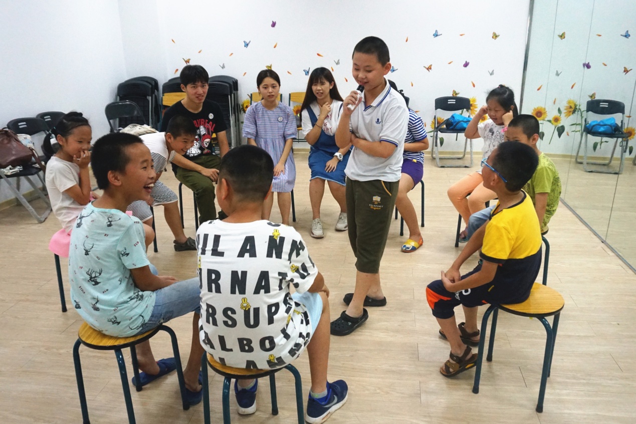 7月7日,实践队员与社区的老人和孩子们初次见面。为了让大家尽快熟悉起来,队员们组织了心理素拓游戏。“你画我猜”、“正话反说”、“击鼓传花”等小游戏简单有趣,倍受大家的喜爱。在欢声笑语之中,社区学员与实践队员迅速拉近了距离。