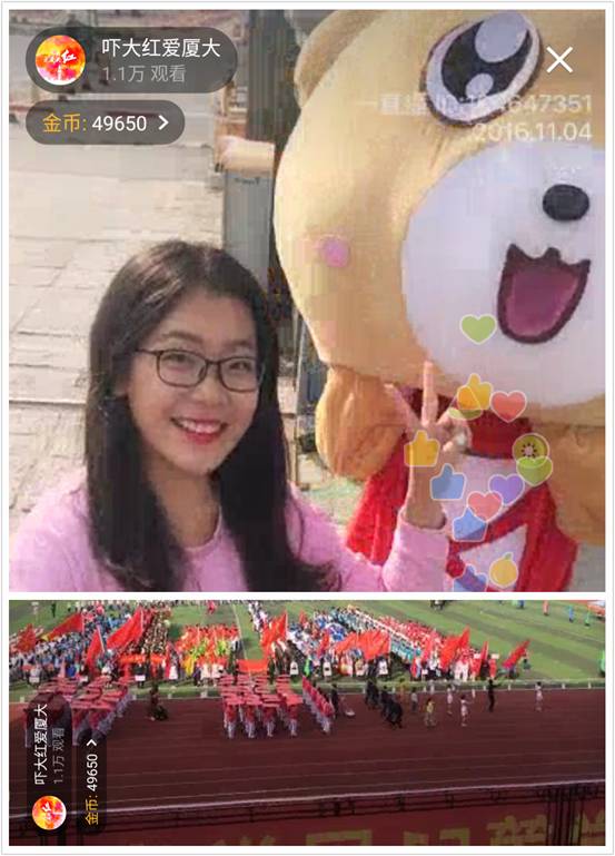 此外,在本届校运会上,华体网学子通过网络直播的方式对校运会和翔安校区优美的校园环境进行宣传也是一大亮点。外文学子创办的“吓大红爱厦大”学生活动网络直播工作室与厦大易班首次联手合作,以学生主播与“易班熊”搭档的全新形式对校运会入场式进行了直播,同时通过线上抽奖互动、易班熊实体合影等形式进行线上线下互动,目前直播影像回放次数已达1.1万人次。