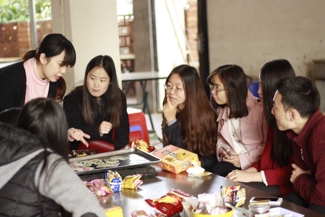 早上十点左右,同学们到达活动地点。大家在纷纷在烧烤桌前坐定,分享带过来的零食,现场欢声笑语、其乐融融。同学们边吃边聊,班委提议大家一起玩游戏,获得一致同意。经过商讨后,同学们选定了两种桌游游戏:狼人杀和UNO。同学们根据自己的兴趣选择要玩的游戏,游戏好手们也开始给新手们讲解规则。了解基本的规则之后,两边同学纷纷开始大展身手,斗智斗勇。狼人杀的游戏中,每个人都努力不让自己露出破绽,现场气氛一片紧张;另一边UNO的牌桌上,大家都争相出牌,俨然是一场反应速度的较量。