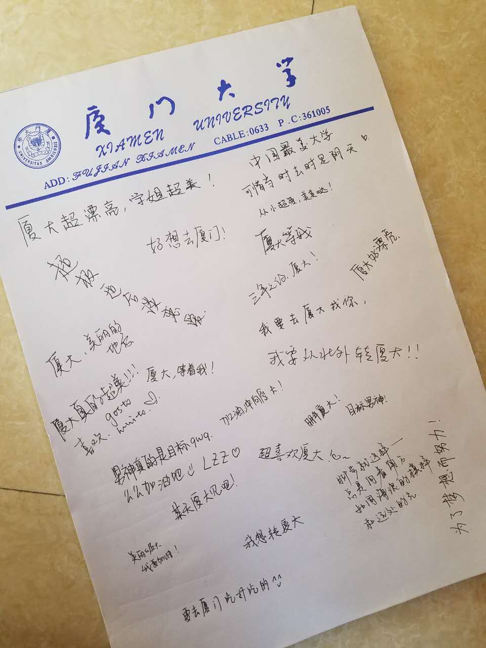 一张书签、一页宣传册、一句“学弟你可以的”都将化成炼狱高三生活的一束光、一盏灯,照亮学弟妹的漫漫备考路。“厦大等我”是学弟妹们的青春梦想,而“我在厦大等你来“则是郑外厦大人的共同祝愿与期盼。