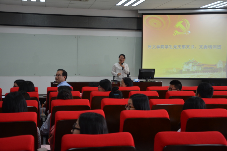 4月19日中午12:45,外文学院党委党校在南光三313报告厅举行学生党支部骨干培训。培训聚焦学生党支部工作热点难点问题,邀请到校党委组织部副部长廖志丹解读《普通高等学校学生党建工作标准》文件精神。学院党委副书记郑新风、杨云良,团委书记乐无恙、副书记肖盈、党务秘书张彬与学工部全体成员、各学生党支部书记、支委50人出席了培训会。会议由郑新风副书记主持。