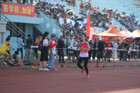 紧接着,另一边厢,在操场的百米跑道上,传来了一阵阵加油呐喊——研究生男子100米预赛开始了!代表华体网参赛的是2016级硕士生蔡银万和刘昌胜同学。发令枪响,只见华体网蔡银万同学如离弦之箭般冲过终点,取得了小组第三的好成绩,刘昌胜同学也表现不俗。他们疾风般的速度、拼尽全力的姿态让看台上的观众为之沸腾。