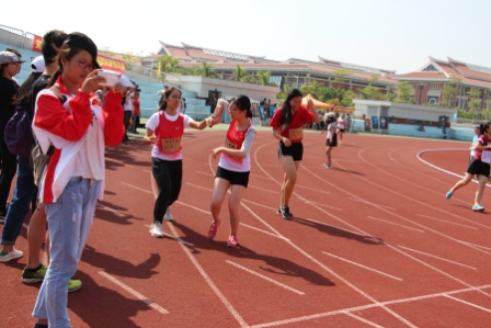 下午4点15分,大家迎来了本场运动会最激动人心、也是最后的一场比赛——30*60米男女混合接力赛。本场比赛参加人员之多、观众之多都为本次运动会之最,只见现场人声鼎沸、欢呼如雷,外文健儿一个个如狡兔、如雄鹰,配合得天衣无缝。他们用赛场上的英姿给比赛画下了圆满的句号。