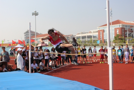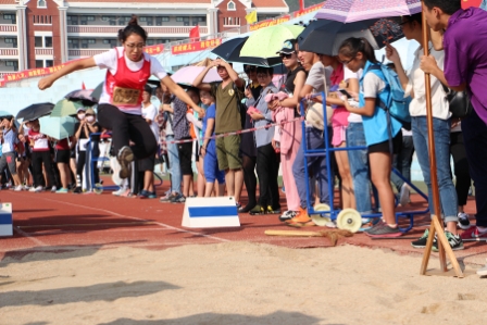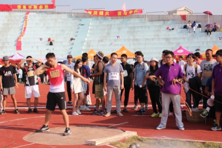 上午的比赛就这样告一段落,同学们稍作休息后,迎来了下午的精彩比赛。下午两点,男子铅球决赛、男子跳高决赛和女子跳远决赛同时如火如荼地进行着。华体网2015级硕士生张凯帆同学同时参加跳高和铅球比赛,虽然要在两个比赛场地之间来回奔波,但是都取得了不错的成绩。上午已经身经百战的金鑫同学和吴翠莲同学也分别积极投入铅球比赛和跳远比赛中,为了外文荣光努力坚持着。