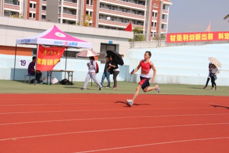 在一个小时的等待之后,九点十五分,外文学院迎来了激动人心的女子400米决赛。400米比赛,对参赛者的速度和耐力要求都很高,但2016级硕士生张延香和2014级硕士生周晋同学却迎难而上。比赛之前,她们脸上挂着笑容,比赛之时,她们步伐矫健而平稳,比赛结束后,她们已经脸色苍白,额头上的汗珠见证了她们的辛苦。然而,努力是值得的,因为张延香和周晋两位同学都取得了小组第二的好成绩!