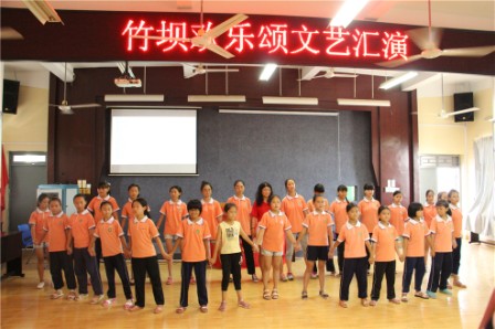 文艺汇演由支教组成员魏琛和竹坝学子李思思担任主持。在主持人简要介绍了此次实践活动各组所取得的成果之后,三名戴着墨镜、着统一服装的小男孩吸引了全场的注意,激扬高亢的歌声一出来,小朋友们劲爆十足的舞蹈就引来阵阵欢呼。
