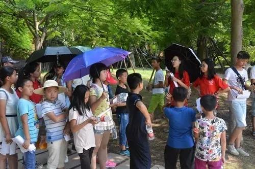 实践队队员带领小朋友参观芙蓉湖