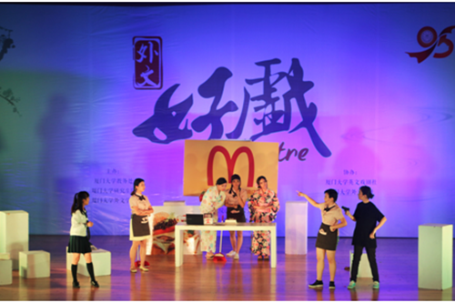 6月10日晚的科学艺术中心音乐厅灯光熠熠,热闹非凡。由厦门大学教务处、研究生院和外文学院共同主办,外文学院英语语言文学系、日语语言文学系、欧洲语言文学系、法语语言文学系及外文学院团委承办,厦门大学英文戏剧社、外文学社协办的“外文好戏”之日、德、俄专场“三国演艺”――《麦大劳的“野心”》《钦差大臣》《破瓮记》用120分钟精彩绝伦的表演为广大师生献上一场视听盛宴。