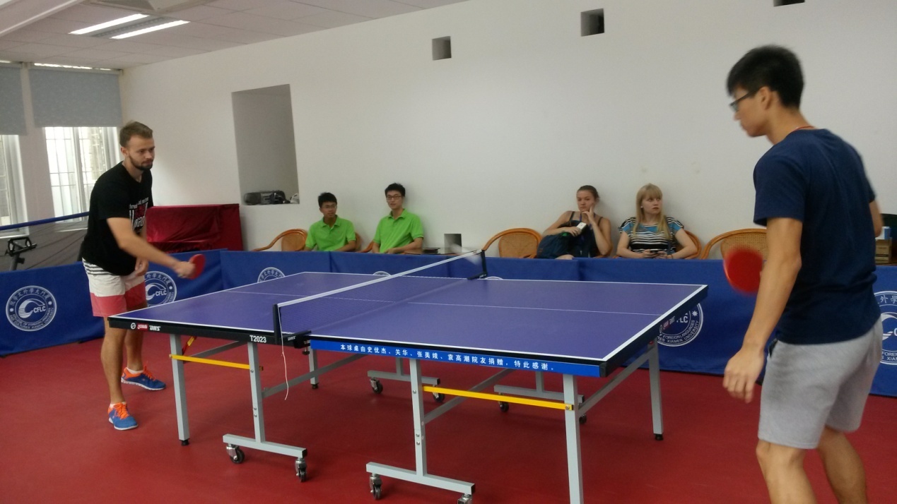 比赛分为两个部分:单打对抗赛和趣味互动环节。单打对抗赛由四组男子单打赛组成。在单打对抗赛中,中俄双方的选手全力以赴,现场观众掌声不断。俄罗斯选手一开始球技稍显生疏,但不过半局就掌握了要领,发球的姿势潇洒有力,接球沉着平稳,打出了坚韧、自信、乐观的风采。中国选手们也不示弱,从一开始就表现出专业的水准和令人叹服的高超球技,身手矫健,帅气逼人。经过四组车轮战后,中国对代表樊杰以3:2 险胜俄罗斯代表Багдан。单打对抗赛结束后,学院老师代表为表现优秀的选手颁发了奖品。