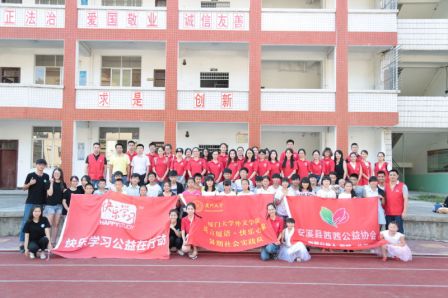 7月23日上午,经过三个多小时的舟车劳顿,“英言厦语•快乐心象”暑期社会实践队到达了美丽的泉州市安溪县湖上中学。在短暂的休息后,于下午三时举行了开营仪式。此次开营仪式有幸邀请到湖上乡纪委书记叶明昆、安溪茜茜公益协会会长陈艺德莅临,来自厦门大学外文学院的实践队全体成员、快乐学习教育科技集团代表、湖上中学的同学们共同参加了本次开营仪式。