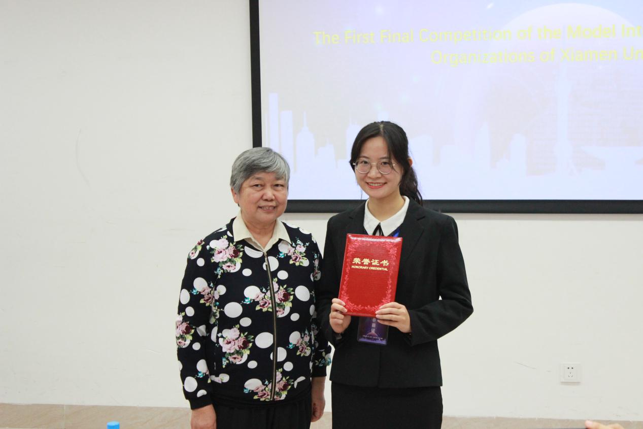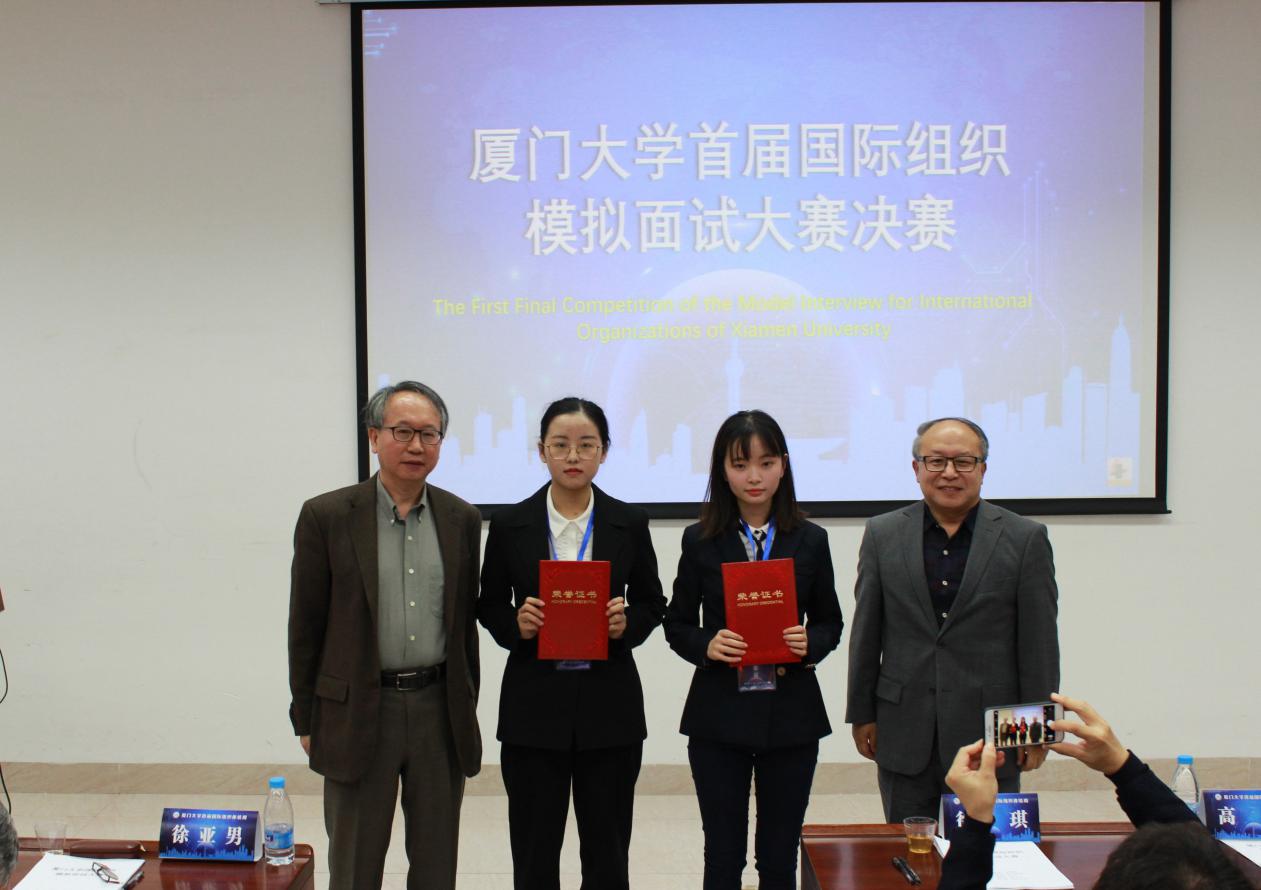 11月30日上午,厦门大学首届国际组织模拟面试大赛决赛如期开赛。徐亚男大使、李正仁教授、傅鹏辉教授应邀出席并担任评委,校学生处副处长高斌,外文学院党委副书记杨云良、副院长徐琪出席本次活动并为获奖选手颁奖。