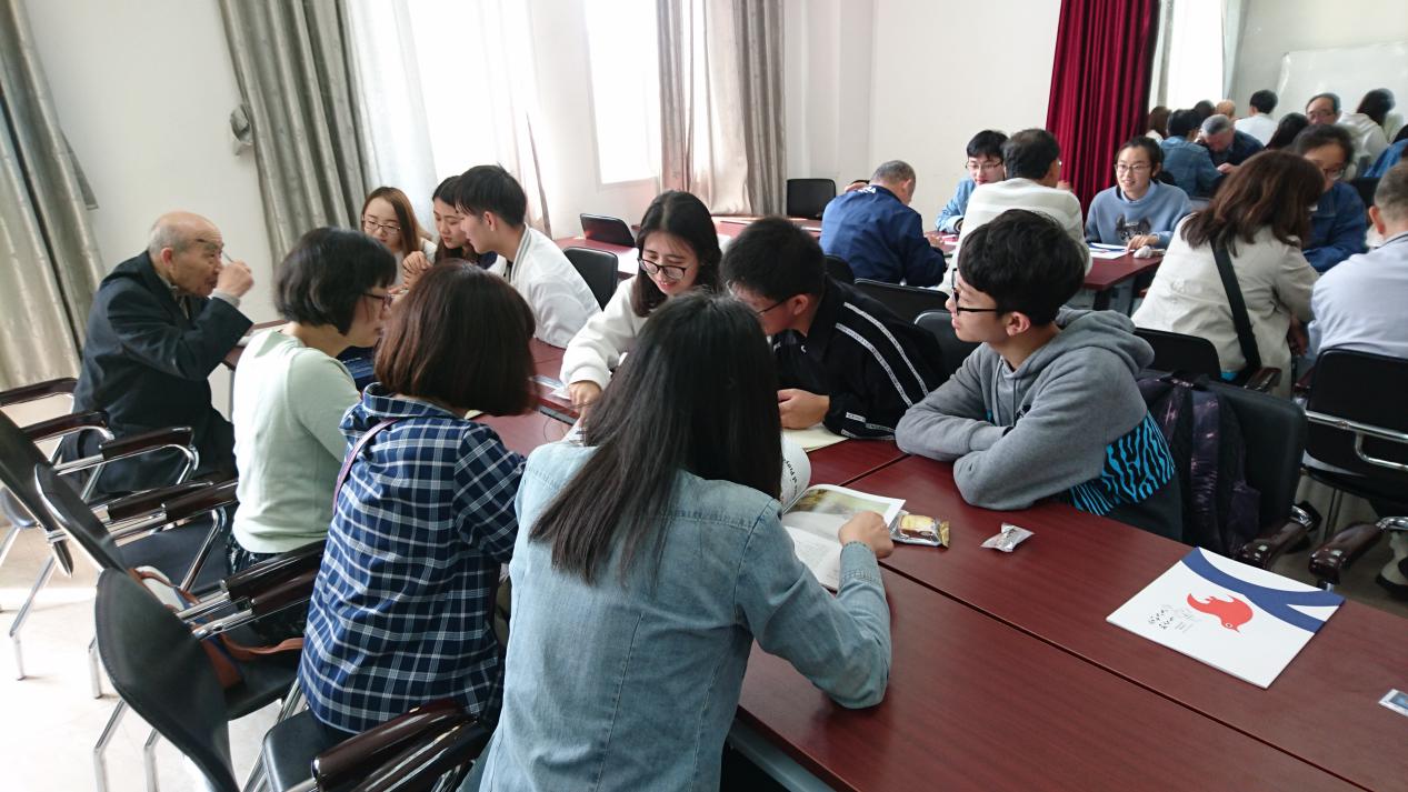 之后,学生们与代表团分为几个小组进行了语言学习的交流,同学们帮助来宾如何更好地学习汉语,同时积极传播厦门大学乃至中华悠久历史与传统文化。嘉宾们也积极帮助同学们纠正日语发音以及表达错误等,传达自己作为代表团一员的友好之情。代表团中最年长的吉川雄幸先生已经82岁高龄了。17年前曾任华体网日语系的外籍教师。吉川老师与同学们分享了他当年在厦大的点点滴滴。