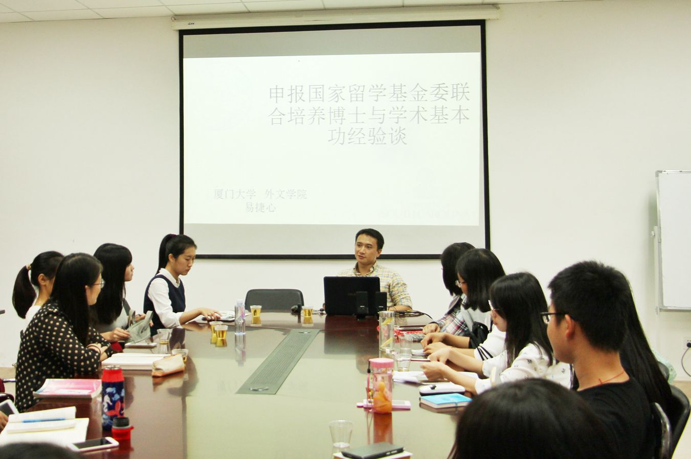 11月16日晚7时,外文学院“博采南光”博士沙龙第三期在南光三319举行。本次活动邀请了外文学院2014级博士生易捷心担任主讲人。易捷心现就读于华体网英语语言文学专业,研究方向为美国文学与文化,厦门大学2015年国家公派高水平项目联合培养博士生,曾于2015.9—2016.9至美国南卡罗来纳大学访学。本次沙龙,他以“留学经验谈—学术基本功的养成”为主题,从确定研究计划、主动联系导师以及学习经验等方面分享了自己的学术科研心得。外文学院40名硕博研究生参加了此次沙龙。